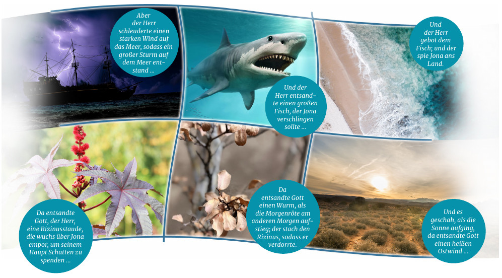 Es steht völlig außer Frage, dass das beschriebene Ereignis ein echtes Wunder war. Tatsächlich beschreibt die Geschichte von Jona nicht nur eines, sondern gleich sechs Wunder Gottes. Für einige von ihnen hat Gott Naturphänomene gebraucht: